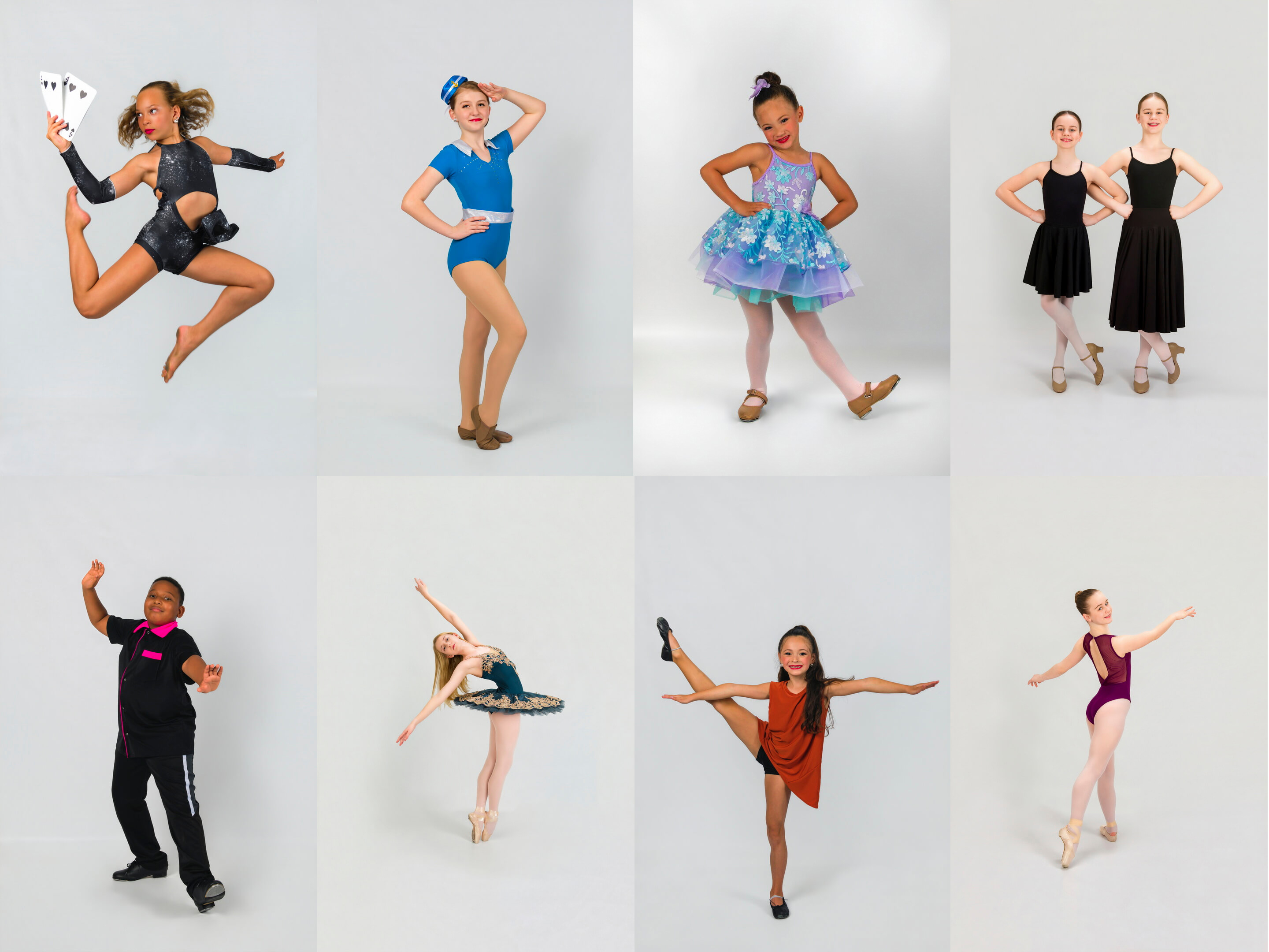 We’ll build a custom schedule based on your enrollment, but most dancers need just a few minutes for individual poses and group photos. Our goal is to keep photo day running smoothly alongside your regular class or rehearsal schedule.